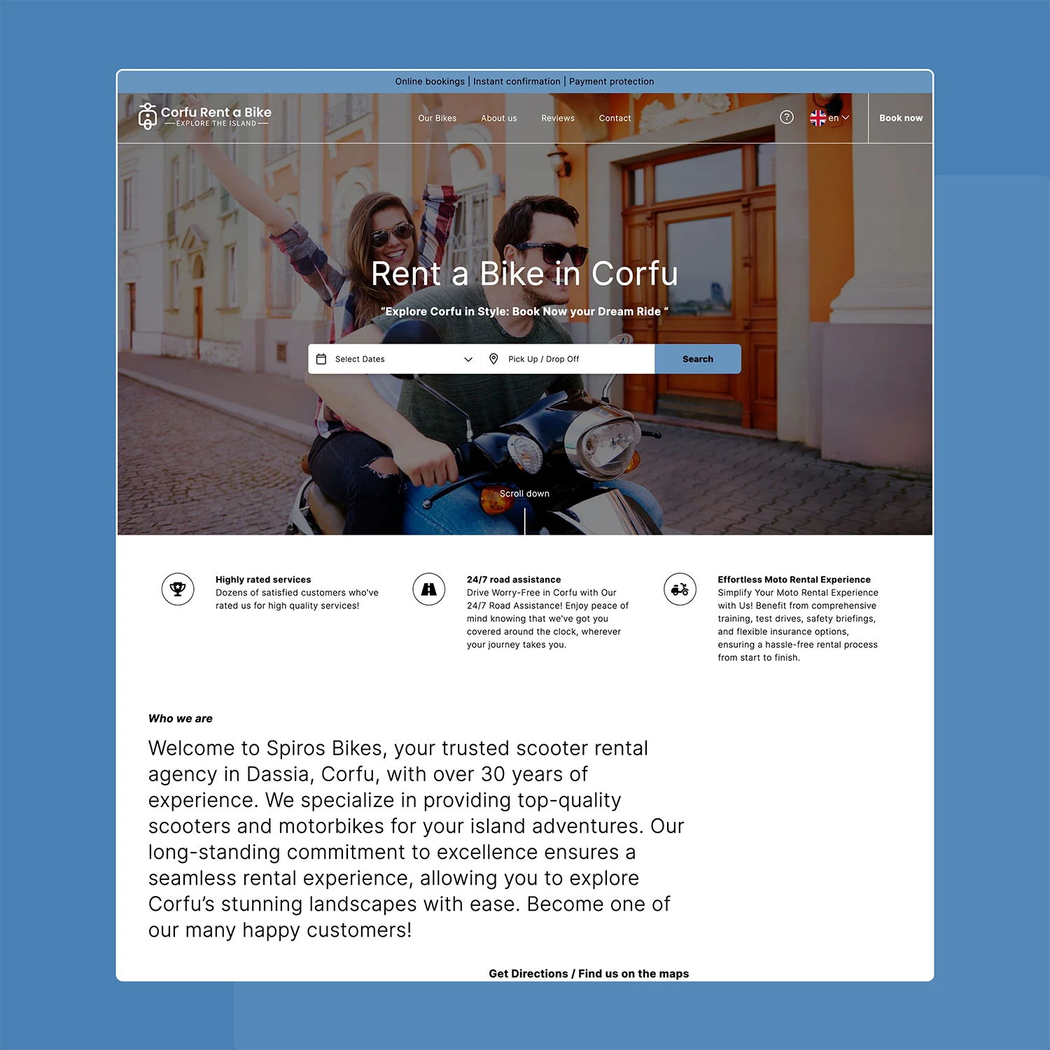Corfu Rent a Bike - Ιστοσελίδα και σύστημα κρατήσεων χωρίς προμήθεια για συνεργάτη