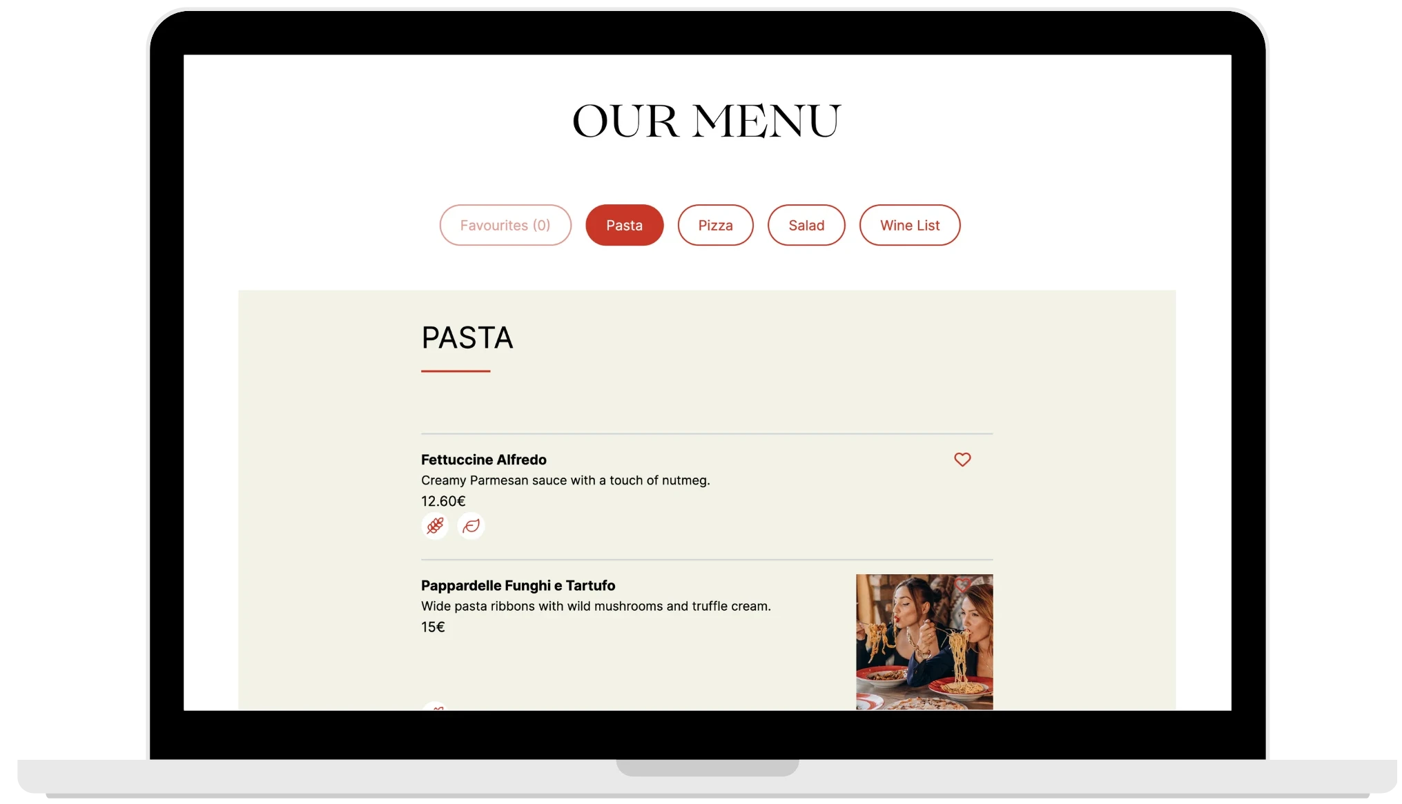 Η ιστοσελίδα σου περιλαμβάνει δομή για την προβολή της λίστας κρασιών του εστιατορίου σου, με κατηγοριοποίηση ανά τύπο, ποικιλία ή προέλευση.