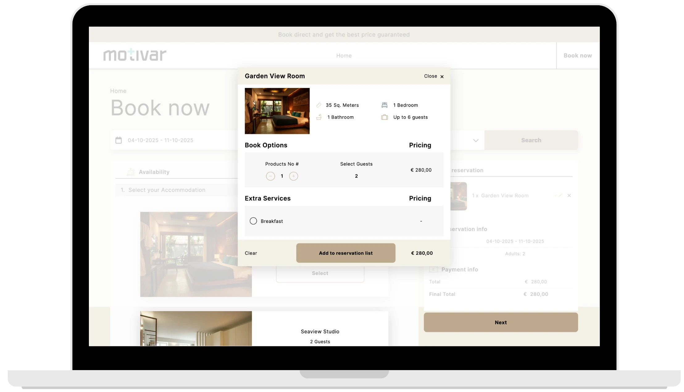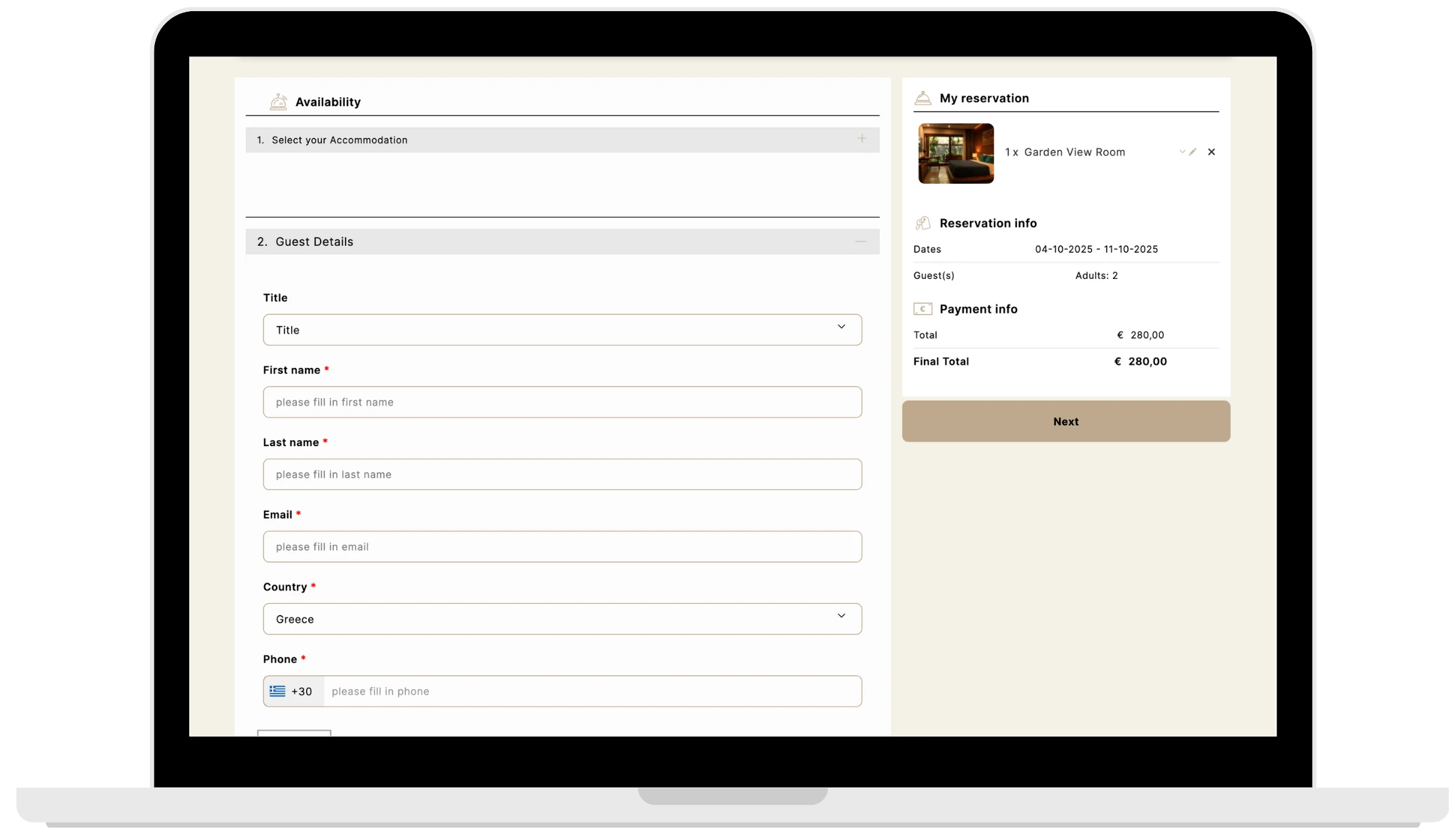 Το σύστημα κρατήσεων που ενσωματώνουμε είναι φιλικό προς τον χρήστη, λειτουργεί σε όλες τις συσκευές και έχει υψηλό ποσοστό μετατροπών επισκεπτών σε πελάτες.